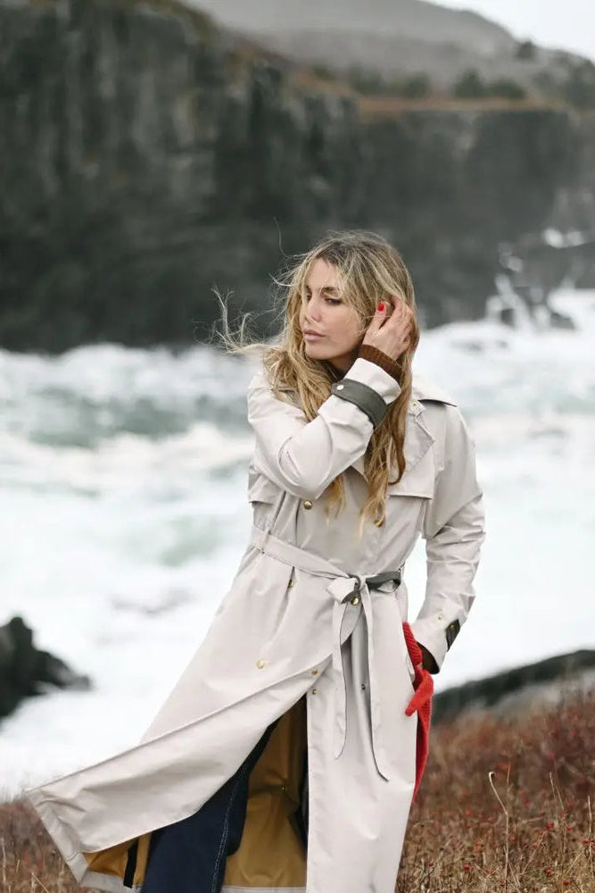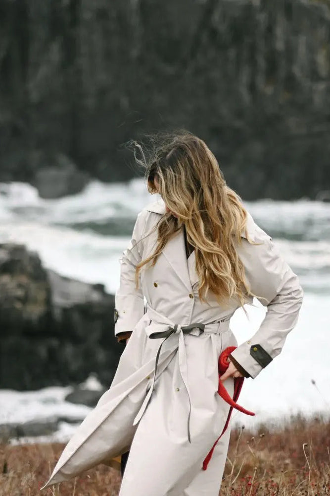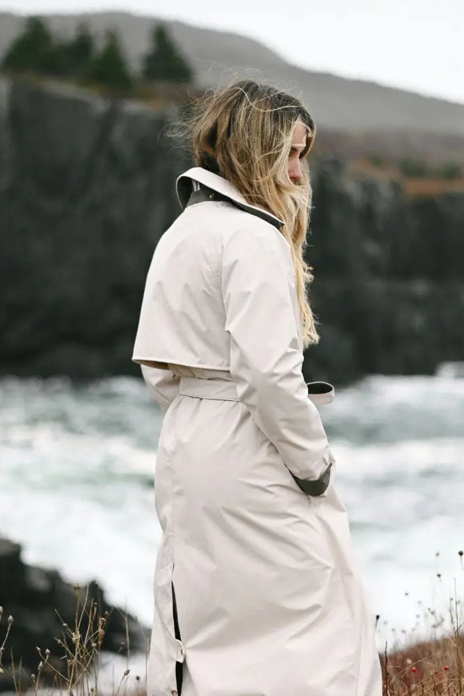 Everything about the Trench Rain Coat makes it a timeless staple for the conscious wardrobe. From the three-layer bonded waterproof, breathable fabric to it’s double-breasted front, detachable hood and side pockets. Crafted by hand in Nova Scotia from fairechild’s signature weave of recycled content, this trench is built for inclement weather. The contrasting adjustable wrist cuff, tie belt and collar makes this trench refined and elegant, yet still the durable and practical. The everyday coat you will reach for even when it's not raining!