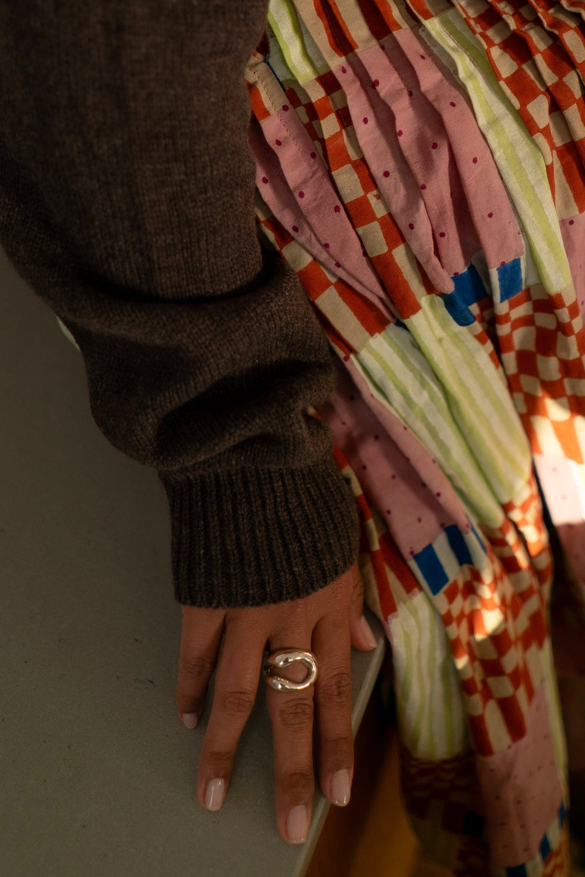 A statement ring, organic in shape with a central opening that plays with negative space and hugs your finger. Mirror polished and handcrafted from solid sterling silver in Montreal. MATERIALS & Size Solid 925 sterling silverRoughly 19mm at widest