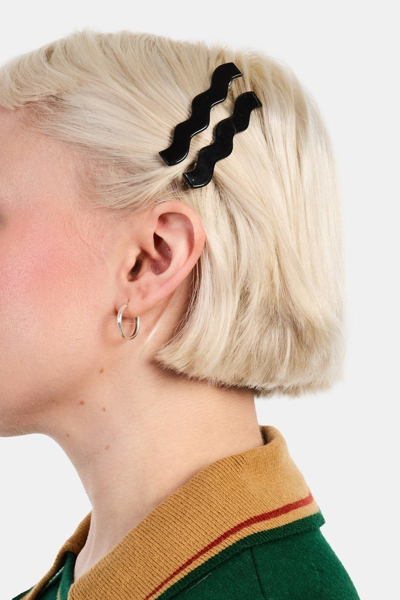 A perfect pair of alligator clips. Small metal teeth provide a strong hold with no snag. Ideal for all hair types and lengths. Great for taming bangs and flyaways.
