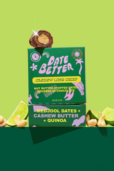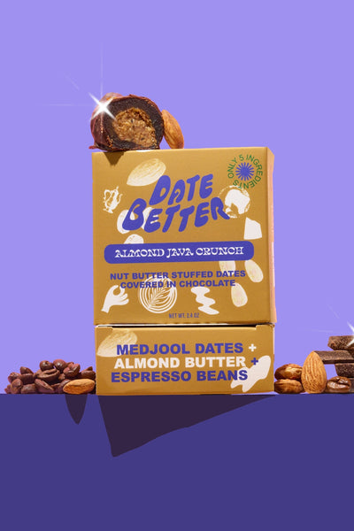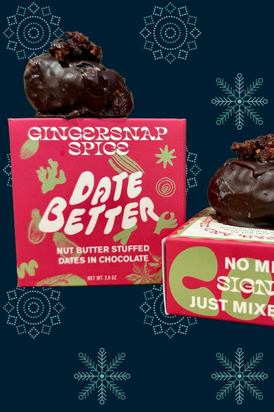 Date Better with these vegan, gluten-free snacks that are nutritious and wholesome yet still indulgent. Handpicked perfectly caramel-y Medjool dates are all dressed up in a coat of rich 85% organic fair trade chocolate that does not contain any preservatives or emulsifiers. Stuffed with fresh-ground nut butter and packed with vitamins, minerals and a bunch of good vibes. And the cherry on top? Less than 1 gram of added sugar. Yep, we couldn't believe it either!