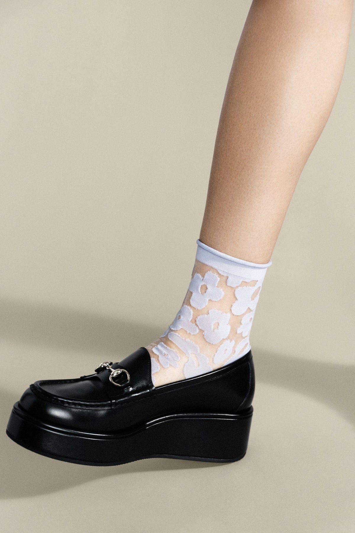Incredibly luxurious sheer socks brought to you by Hansel from Basel to complete any and every outfit. Knit with a super high needle count for detailing and a hand-closed toe for extra comfort. Made in Japan.