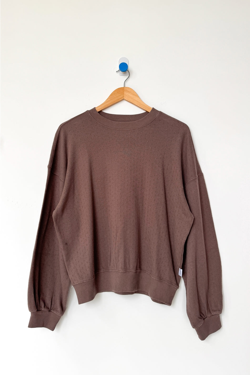 A lightweight layer for shifting seasons. The Pointelle Core Sweatshirt is made from ultra-soft jersey pointelle, offering just the right mix of breathability and warmth. With its relaxed drape and voluminous sleeves, it’s a refined take on cozy.