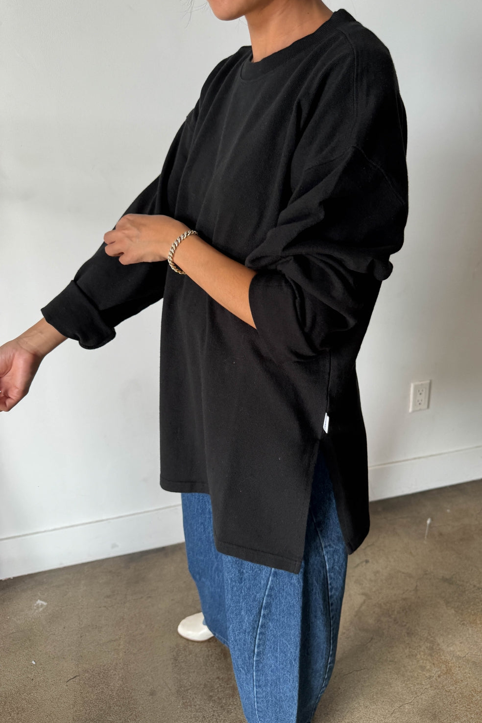 The Sunday Tee is inspired by menswear classic long sleeve tee. Subtle yet playful high side slit transform this simple piece into a fun closet staple. Sleeves are wide enough to roll up!