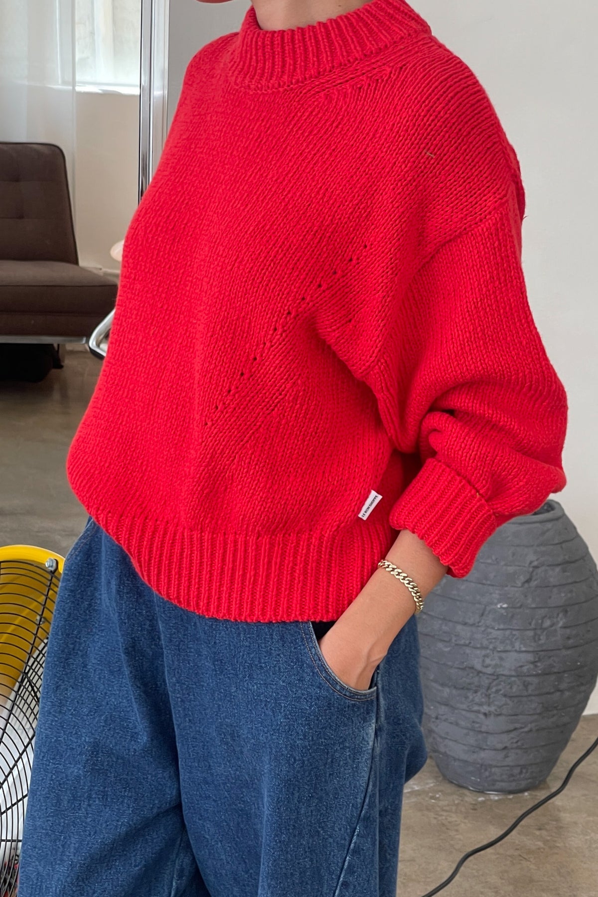 A timeless piece that transcends seasons. Made of mid-weight cotton and high gauge knit, the Zoe Sweater boasts a mock neck with slouchy shoulders and balloon sleeves for a relaxed fit. Ribbed trim adds a classic touch to the neck, cuffs, and hem. Layer the sweater over a cami during cooler moments, or on its own for an airy, elevated yet look.