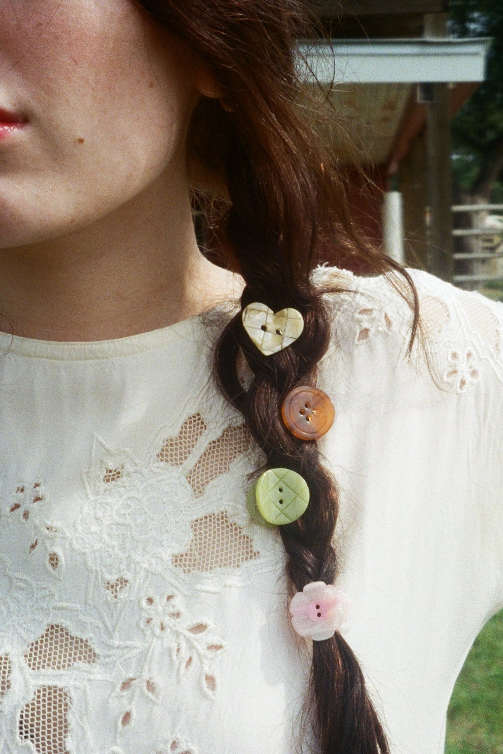Cute as a button! or the trinket and fiber art girls in your life- The Button Mini Claw Set is a set of 4 small hair clips shaped like buttons, complete with carved center holes. These mini clips are ideal for spicing up braids pinning a set of space buns, or putting on little ones. Buttons are sold in a set of 4, this set has a round honey brown, round matcha with carved lines, heart-shaped cream shell, and flower-shaped pastel pink.