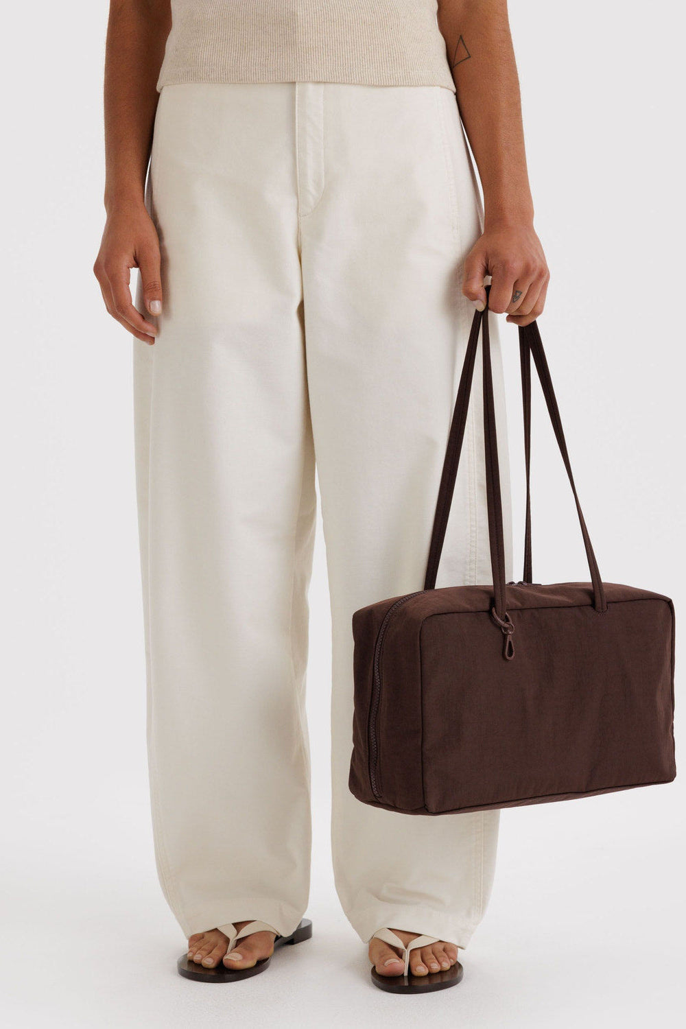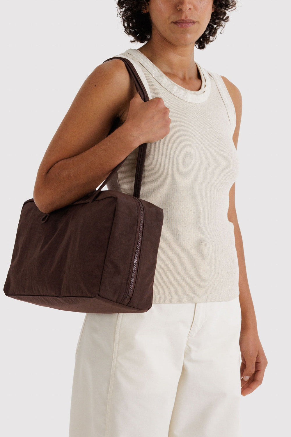 Medium Nylon Bowler Bag, Coffee