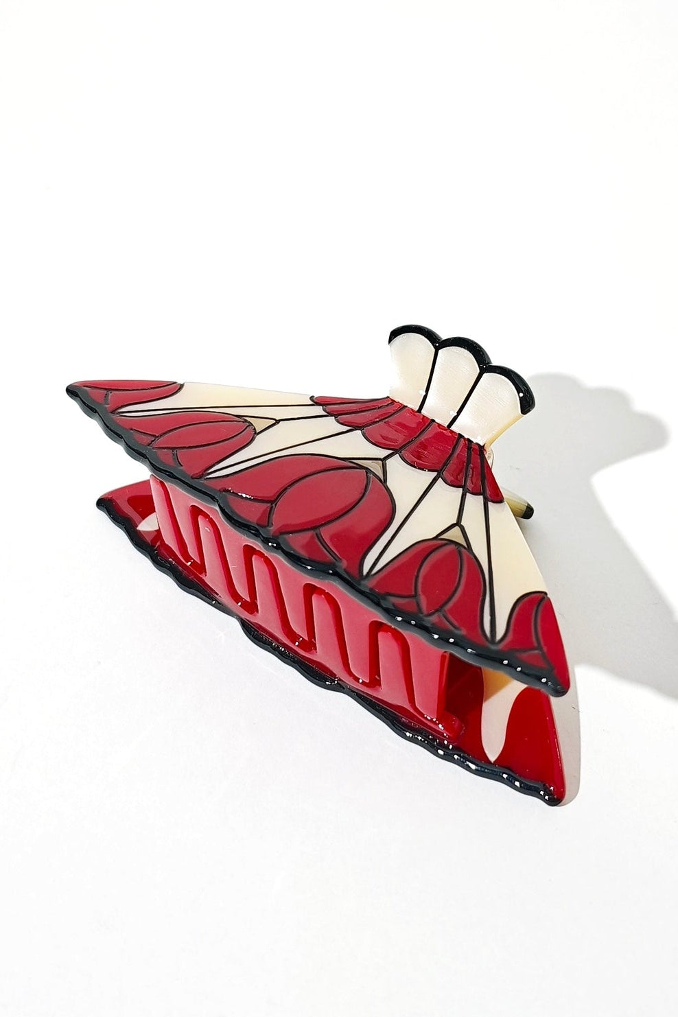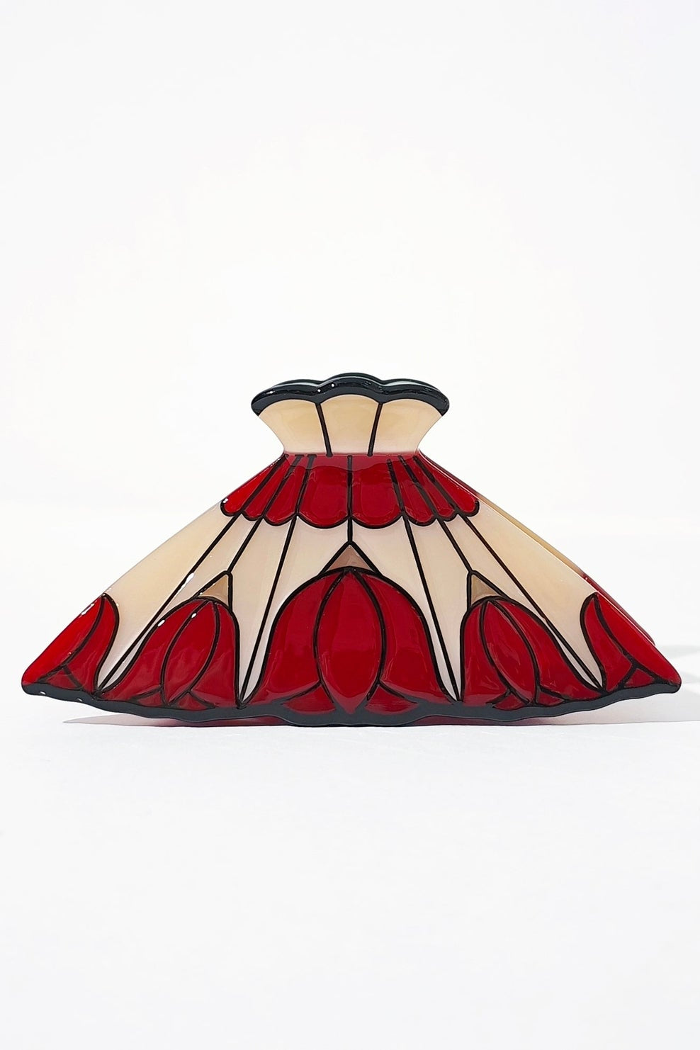 Travel back in time to nan's living room with the Rose Lamp Claw, inspired by vintage stained glass lamp design. Featuring dark roses spliced on an iridescent background with black engraving lines to mimic stained glass.