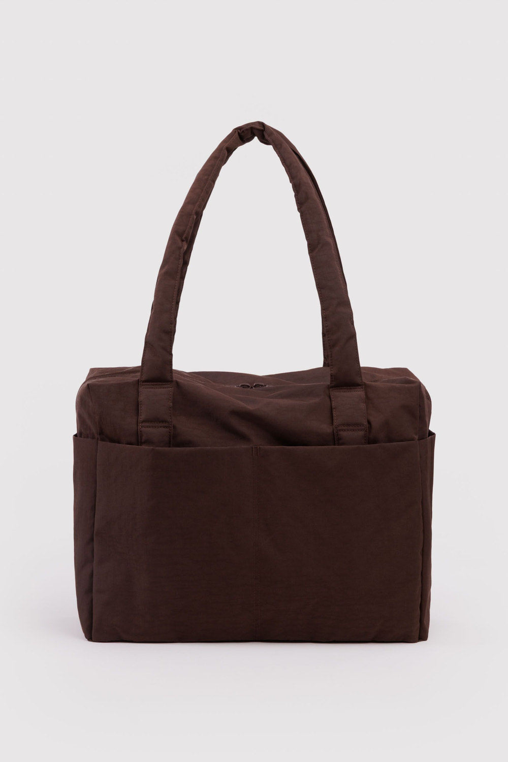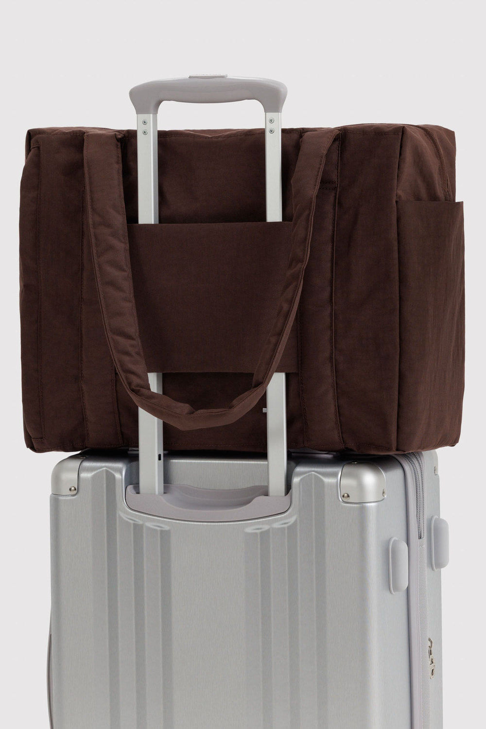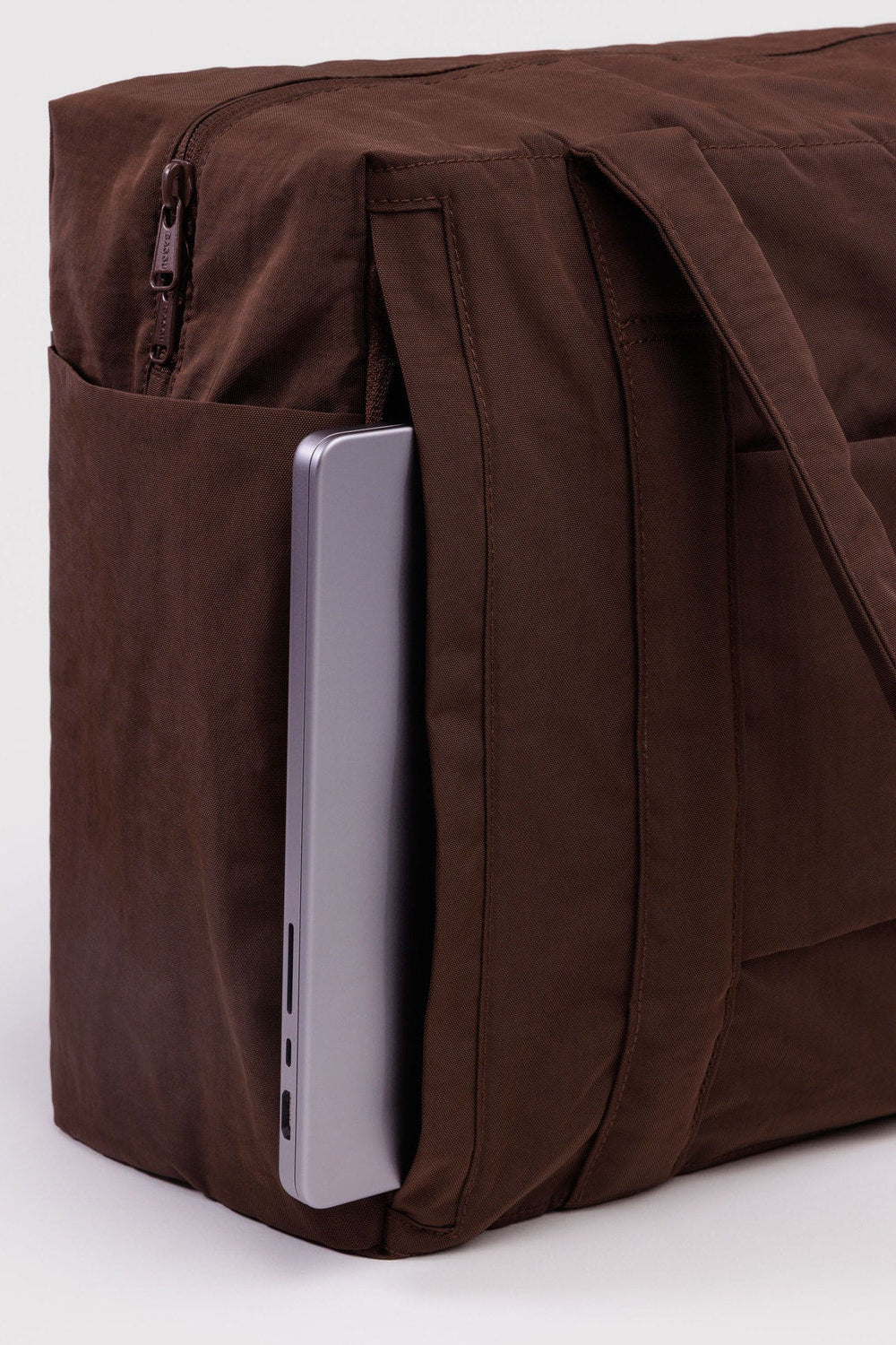 A travel bag optimized for flying: it fits under an airplane seat, on top of your roller bag, and on your shoulder. Exterior pockets keep your travel essentials within reach, including a tech pocket that fits up to a 16” laptop, and side pockets for your water bottle and boarding pass. The bag packs down into its interior detachable pouch for easy storage.