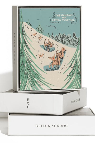 Red Cap Cards is a celebration of art and correspondence. Made in Los Angeles and printed on 100lb heavyweight recycled card stock, each illustration is hand-selected from a family of esteemed artists. Cards are offset printed with generous letter pressed gold foil accents.