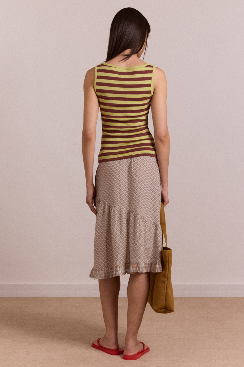 An everyday staple with a playful twist. The Avielle Tank features a flattering wide square neckline and an easy, close fit in soft stretch jersey. Finished in an avocado and choc stripe, it’s complete with DM metal branding at the hem. Pair with the coordinating headband for the full look.