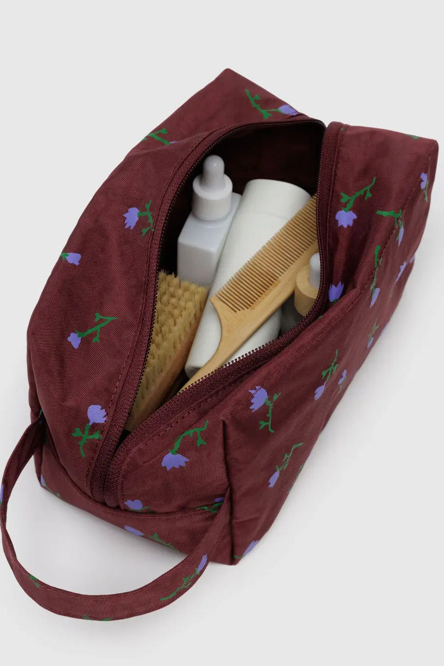 .Peace of mind comes from knowing where you packed your toothbrush. Zip top closure with three interior pockets, loop for carrying or hangingSIZE, DETAILS & CAREMeasures 8 ½" × 4 ½" × 4 ½"Recycled heavyweight nylonMachine washable