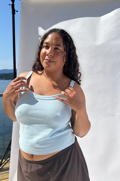 Warm sun on your neck, naps in the sand, and a fitted silhouette Breeze Tank that will never go out of style. Ditch the bra and indulge in this soft, reversible and supportive hemp tank top with the perfect amount of stretch.