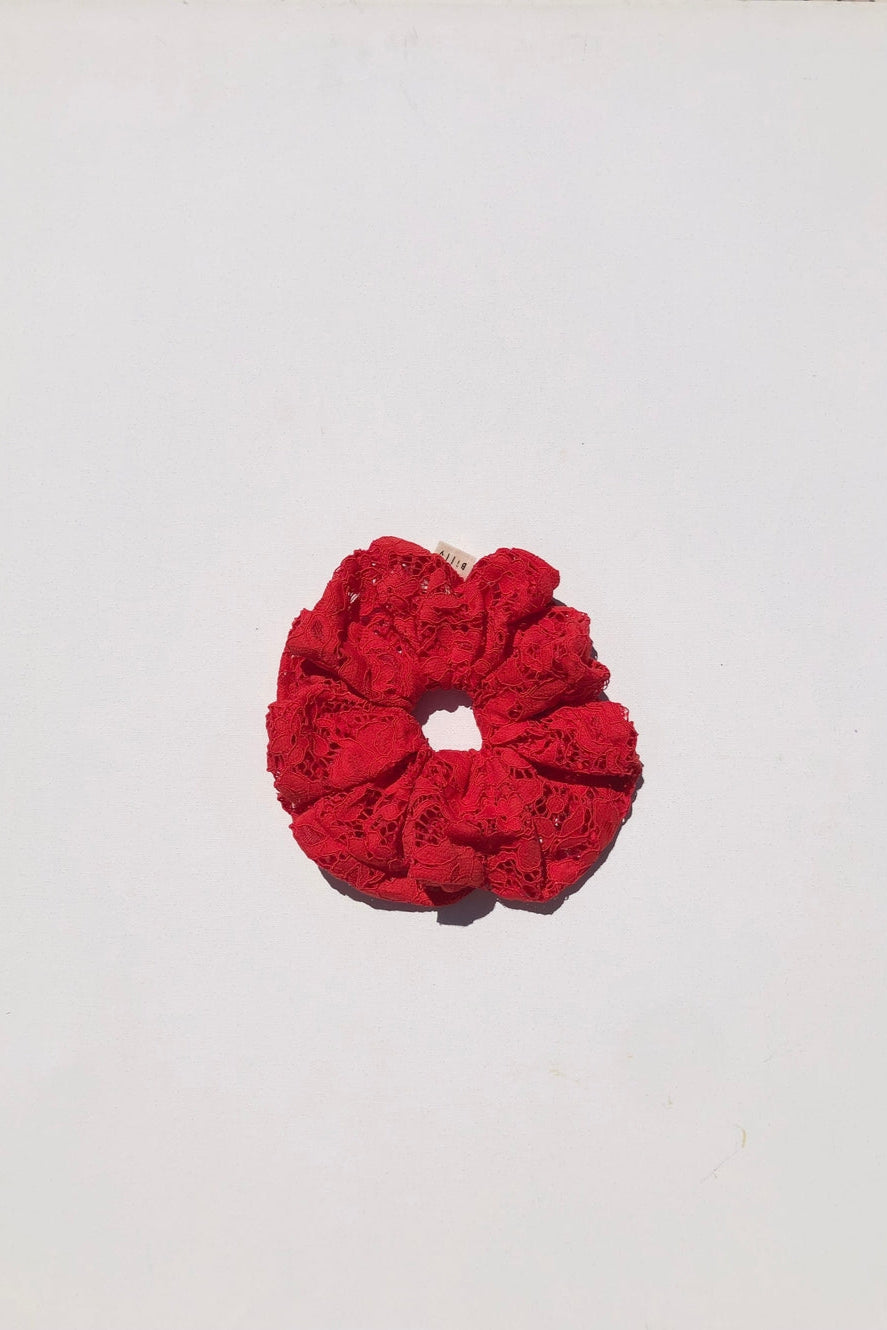 Handmade cotton lace scrunchie in an XL size for maximum punch.
